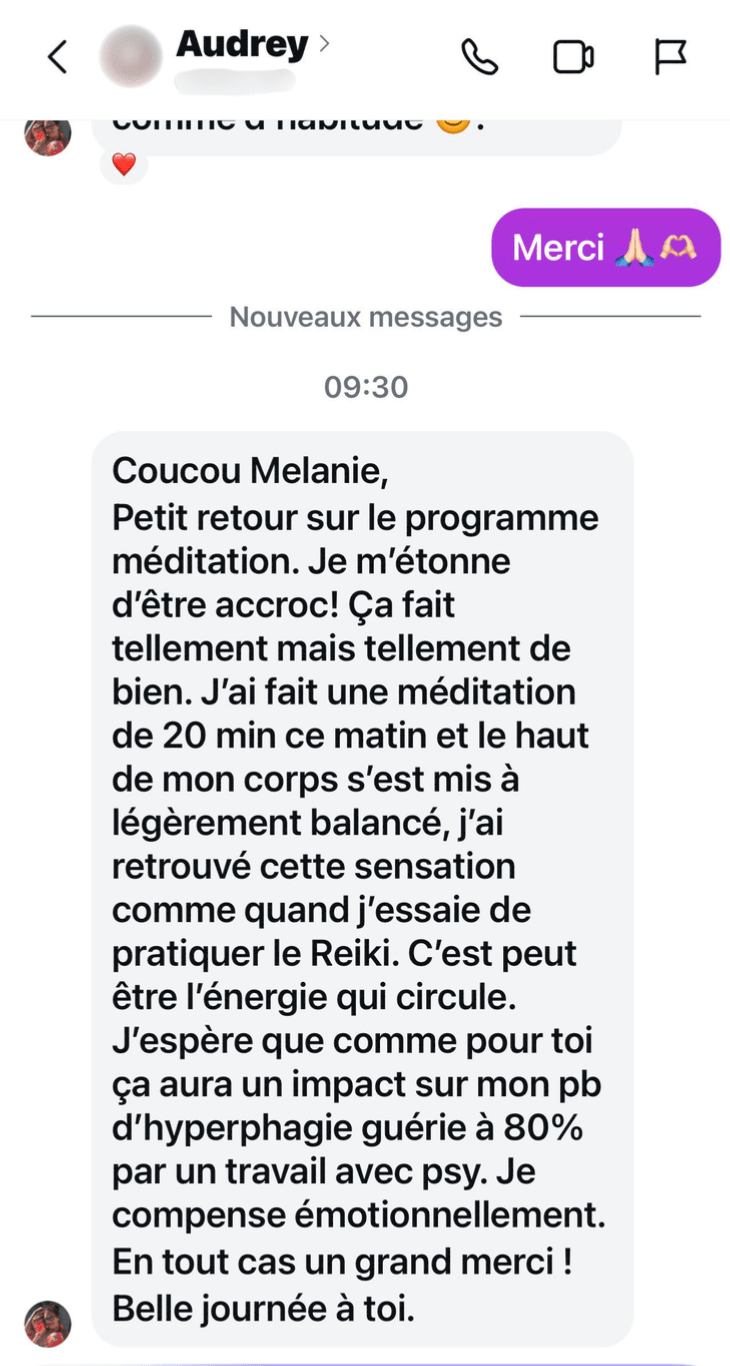 Des audios de qualité : on trouve beaucoup d’audios sur les réseaux qui ne sont pas de la méditation mais plus de la relaxation, ou de l’hypno-relaxation.